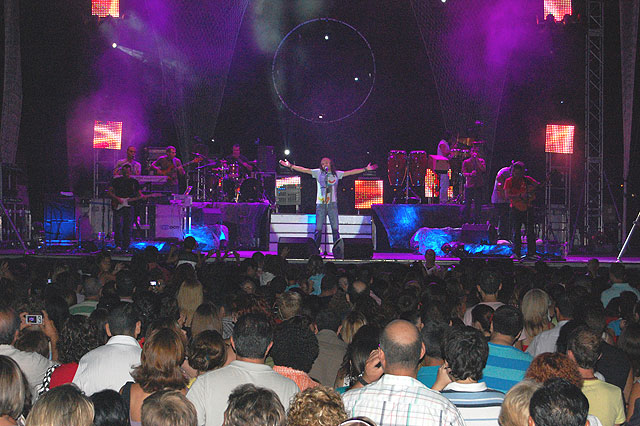 Ayer viernes 24 de julio el popular cantante sevillano “El Arrebato” ofreció en el Parque de la Constitución local un concierto que contó con entrada gratuita y en el que el conocido intérprete andaluz llevó a la noche de Lorquí los temas de su último disco, “Mundología”, canciones que hablan de la alegría y la tristeza, el amor y el olvido, la amistad y el engaño, la calle… Asimismo, también cantó temas tan populares de su repertorio pop-rock andaluz como “Poquito a poco”, “Una noche con arte”, “Búscate un hombre que te quiera” o “Sólo con decirte guapa”.