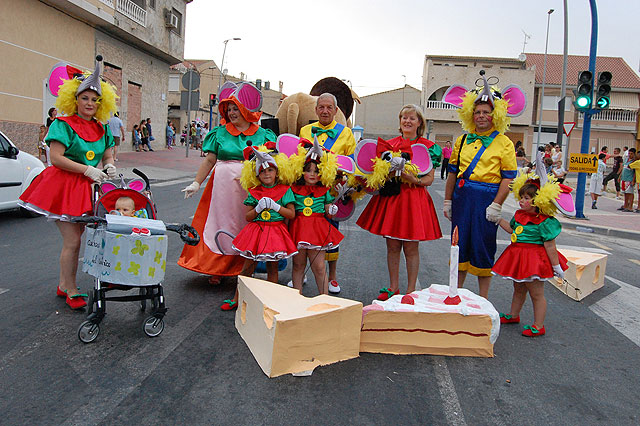 Por la tarde llegó una de las citas festeras esperadas por todos en el municipio. Así, el gran desfile de comparsas y carrozas partió desde la carretera de la Estación y repartió tres premios (de 600, 400 y 200 euros) al concluir su recorrido en la Plaza del Ayuntamiento. El color, la alegría, la imaginación y las ganas de pasarlo bien fueron los puntos más destacados de este desfile que vio cómo las calles del municipio se quedaban pequeñas ante la gran respuesta del público asistente.