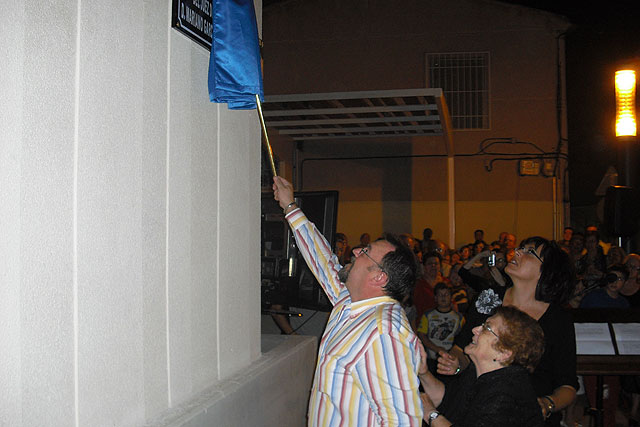 Lorquí vivió en la noche de ayer viernes 2 de octubre uno de los actos más emotivos que se recuerdan en el municipio. Y es que Mariano García Abenza, conocido en la localidad como “Marianico el Grillo” y recientemente fallecido, recibió un caluroso homenaje en un acto en el que oficialmente se inauguró una plaza que lleva su nombre. Este acto, enmarcado en la celebración de las Fiestas del Rosario de la localidad, estuvo presidido por la alcaldesa local, Dolores García Villa, que al final del mismo entregó un ramo de flores a la viuda de Mariano García Abenza, Lola, presente en el homenaje junto a su hijo Mariano –que recordó la ilusión y emoción demostrada antes de fallecer por su padre ante este reconocimiento- y una amplia representación familiar.
