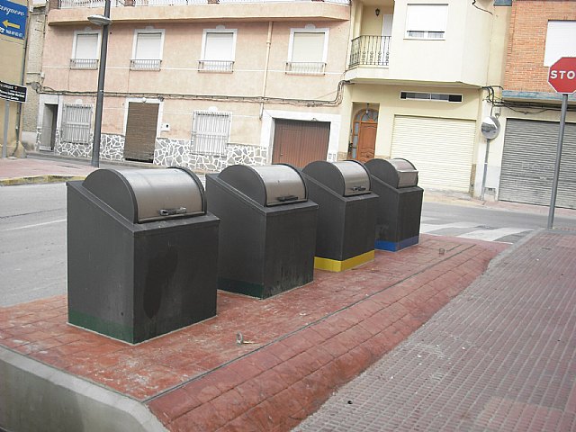 El municipio de Lorquí dispone ya del servicio de dos nuevos puntos de contenedores soterrados destinados a la recogida de residuos sólidos urbanos por elevación hidráulica, que cuentan con cuatro bocas cada uno: dos para residuos orgánicos, otra para envases (el contenedor amarillo) y la restante para papel y cartón (el azul). Así, uno de ellos se ha instalado en la prolongación de la calle Maestro Rodrigo García Abenza, gracias a una dotación de 30.000 euros de la Consejería de Economía, Empresa e Innovación. Esta subvención se enmarca en las ayudas a Corporaciones Locales de la Región de Murcia para el fomento del Sector Comercial y de Urbanismo Comercial.
