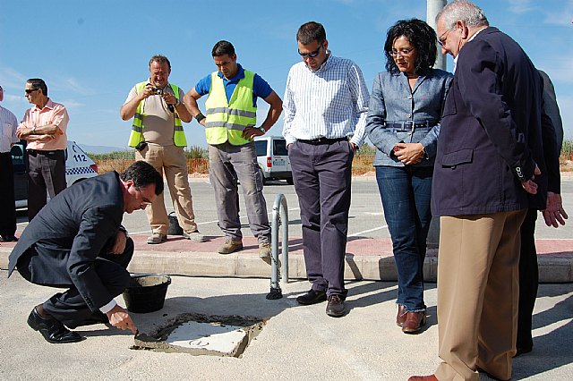 El consejero de Obras Públicas y Ordenación del Territorio, José Ballesta, acompañado de la alcaldesa de Lorquí, Dolores García, ha colocado hoy miércoles 26 de mayo la primera piedra para la construcción de una rotonda en la carretera RM-B33a su paso por polígono industrial “El Saladar I” de la localidad ilorcitana y que permitirá aumentar la seguridad vial y las comunicaciones de esta zona industrial.