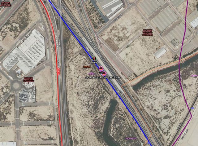 Servicios de emergencia atienden y trasladan al hospital a una herida en accidente de tráfico al colisionar un coche y un camión en el enlace de la A-30 Albacete dirección Murcia a la altura de Lorquí.