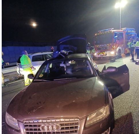 Servicios de emergencia liberan, atienden y trasladan a cuatro heridos en accidente de tráfico, en la A-30 autovía Madrid dirección Albacete, a la altura del polígono industrial El Saladar y Base 2.000, en el término municipal de Lorquí.